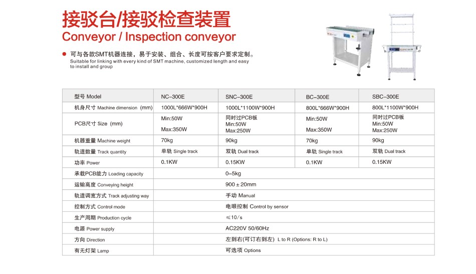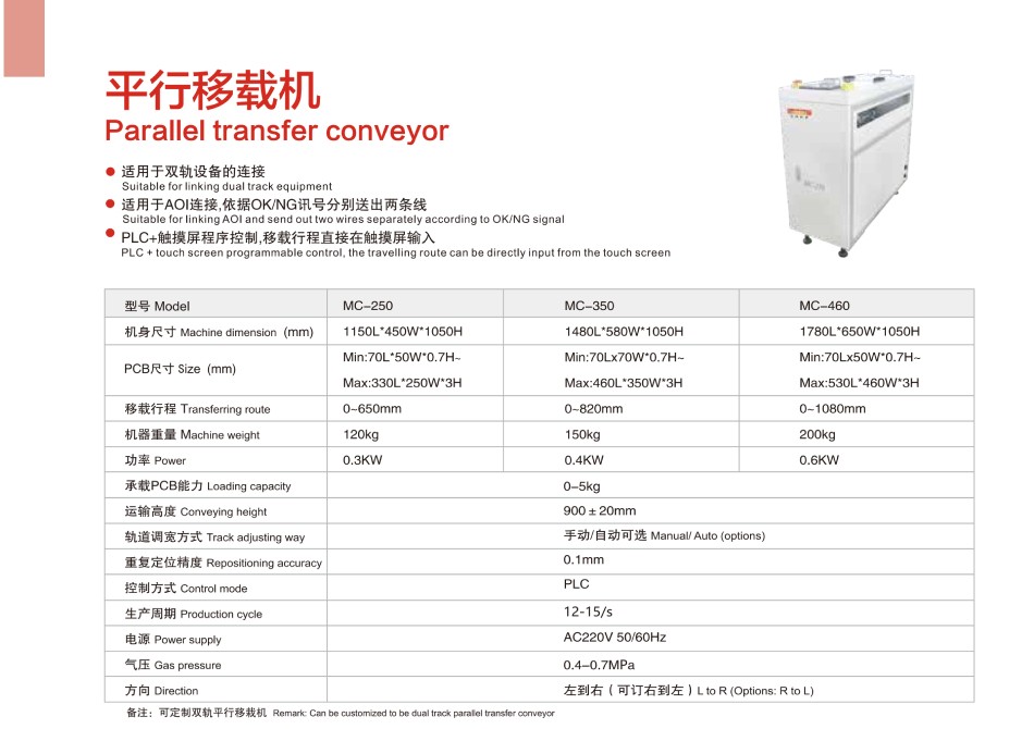 SMT周邊設(shè)備主要有:全自動PCB上下料機、平行移載機、PCB儲板機、NG/OK緩存機、接駁臺、光板真空上料機、翻板輸送機等小型機。