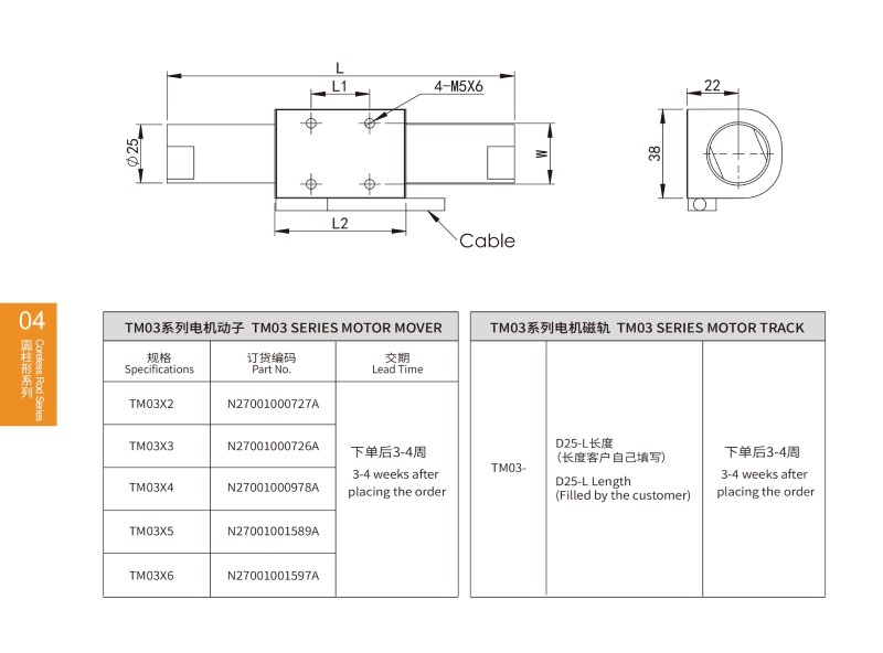 | 磁軌長度(L/mm) Magnet length | L/mm | <400 | <400 | <400 | <400 | <400 | <400 |