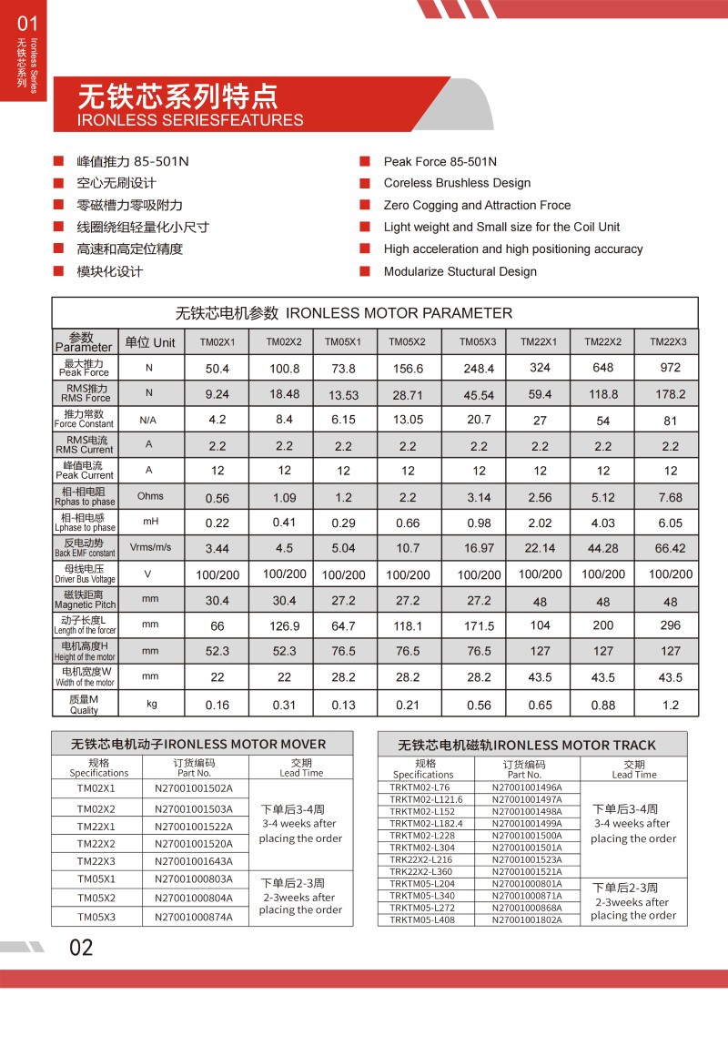 | 無鐵芯直線電機參數(shù)IRON LESS MOTOR PARAMETER | |||||||||