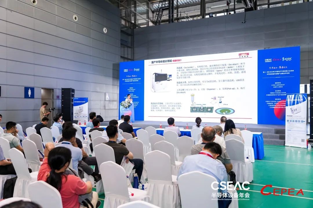 在大會的“新品發(fā)布”專場,日東科技研發(fā)經(jīng)理王永剛,現(xiàn)場發(fā)布了新款半導(dǎo)體封裝設(shè)備“IC貼合機WBD2200 PLUS,并與觀眾分享了半導(dǎo)體封裝設(shè)備的行業(yè)背景、國產(chǎn)化發(fā)展現(xiàn)狀。