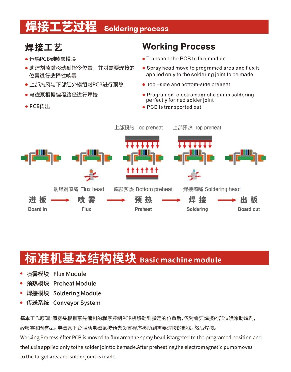 | 噴霧模塊 | 預(yù)熱模塊 | 焊接模塊 | 傳送系統(tǒng) |